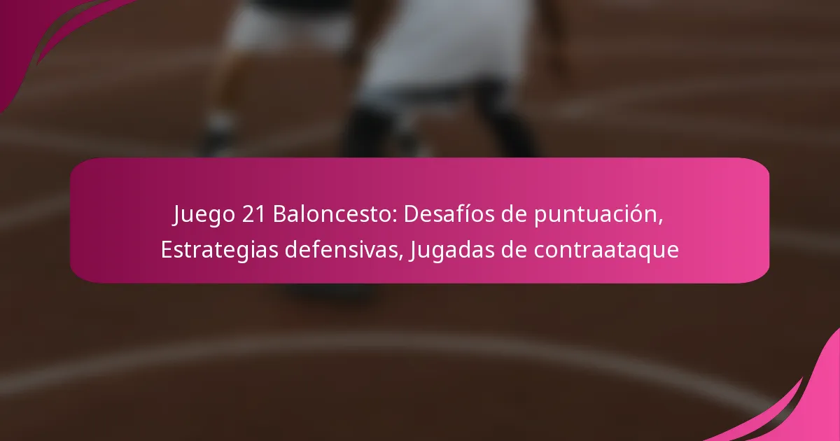 El baloncesto Game 21 presenta desafíos únicos de puntuación que requieren que los jugadores adapten sus estrategias para maximizar los puntos mientras navegan por reglas específicas. Las tácticas defensivas efectivas son esenciales para interrumpir el flujo ofensivo de los oponentes, y los jugadores deben ser hábiles en reconocer y contrarrestar estas estrategias para mejorar su rendimiento general. Comprender tanto las técnicas de puntuación como las formaciones defensivas es crucial para el éxito en este dinámico juego.