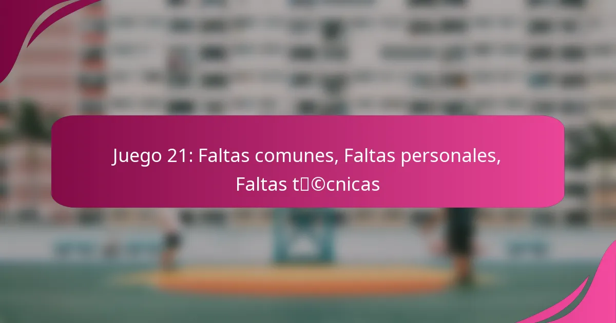 En el Juego 21, entender los diferentes tipos de faltas es crucial para mantener el juego limpio y mejorar el rendimiento. Las faltas comunes interrumpen el juego y pueden llevar a sanciones, mientras que las faltas personales implican violaciones de las reglas por parte de los jugadores que afectan tanto la dinámica individual como la del equipo. Las faltas técnicas, por otro lado, son infracciones sin contacto que también pueden influir en el flujo del juego y resultar en tiros libres para el equipo contrario.